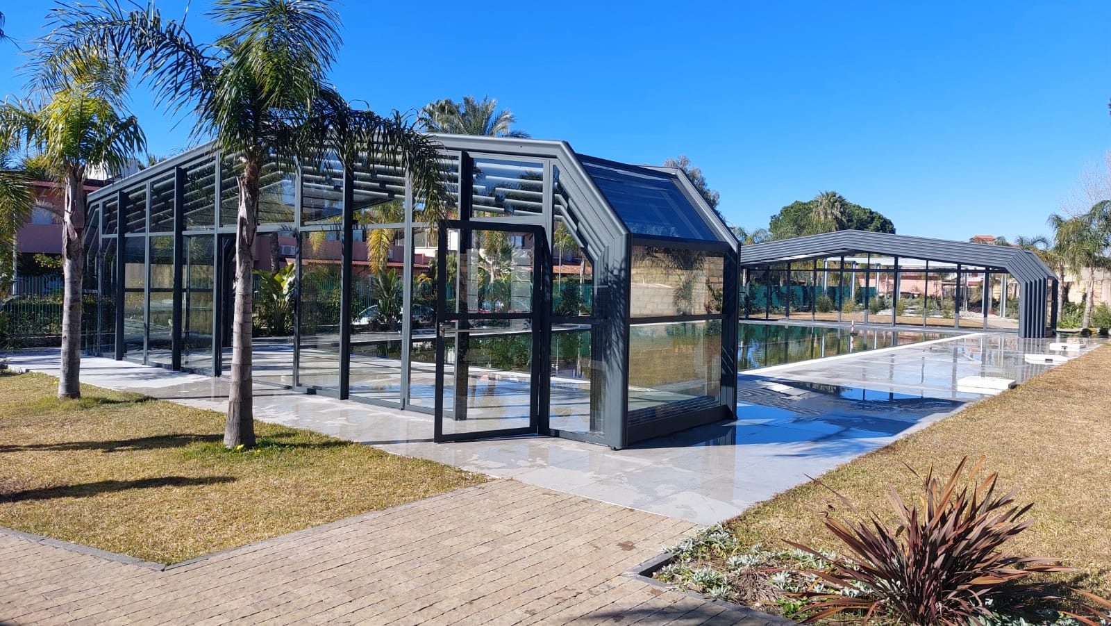 Así, la utilización de policarbonatos de última generación, la evolución y mejora constante de nuestra perfilería de aluminio, y nuestro producto estrella, la cubierta telescópica de cristal, nos convierten en empresa de referencia en el sector por la calidad de nuestros productos.